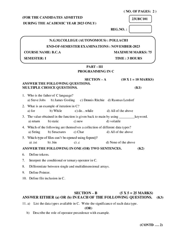 File #2126: "23UBC101 – PROGRAMMING IN C.pdf"