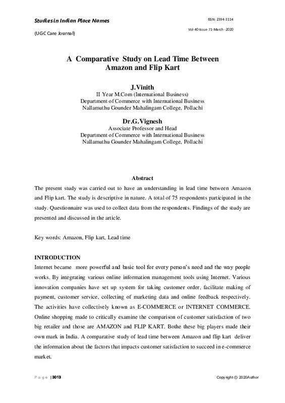 File #2138: "DR.G.VIGNESH 2-A COMPARATIVE STUDY ON LEAD TIME BETWEEN AMAZON AND FLIPKART.pdf"
