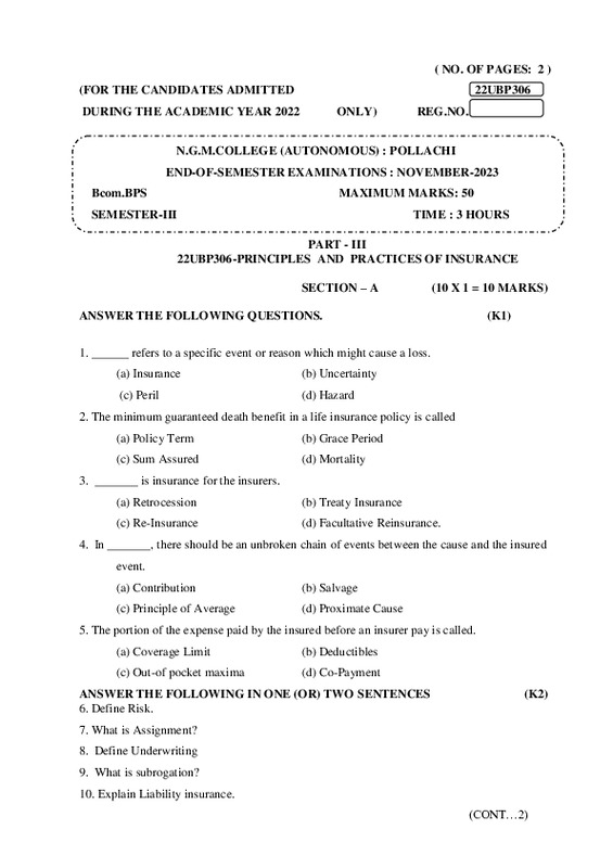 File #2160: "22UBP306-PRINCIPLES AND PRACTICES OF INSURANCE.pdf"