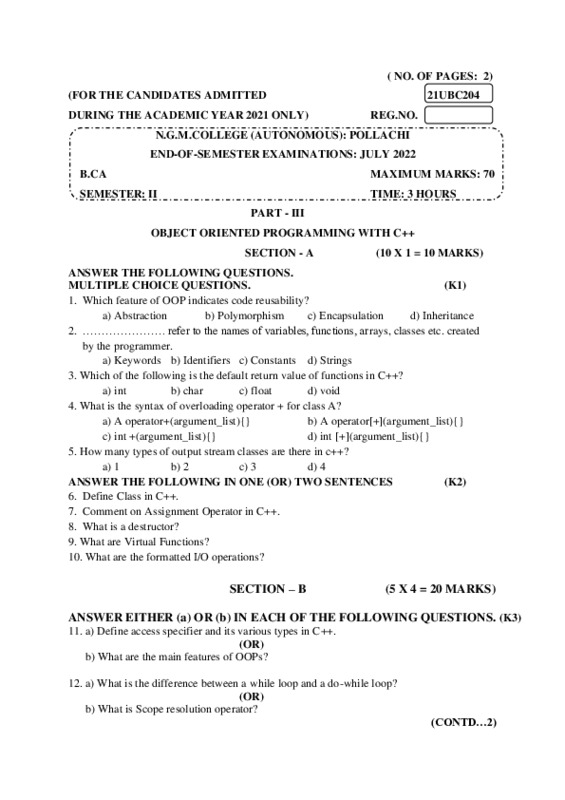 File #220: "21UBC204 - OBJECT ORIENTED PROGRAMMING WITH C++.pdf"