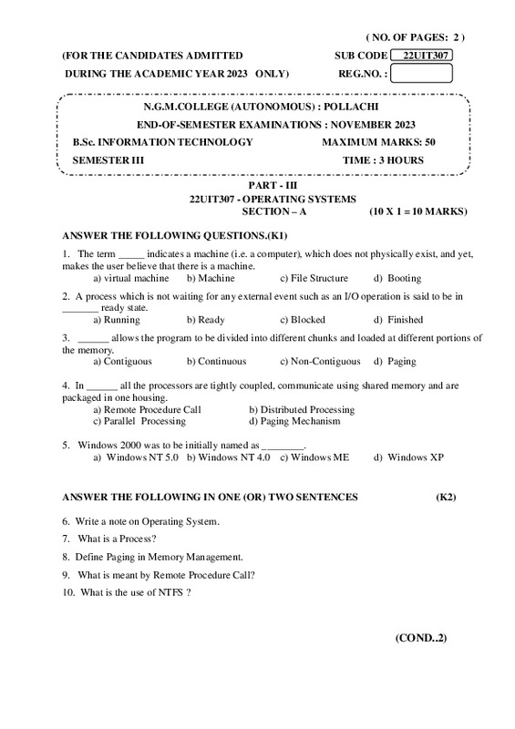 File #2209: "22UIT307 - OPERATING SYSTEMS.pdf"