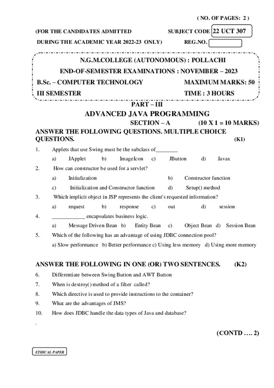 File #2218: "22UCT307 ADVANCED JAVA PROGRAMMING.pdf"