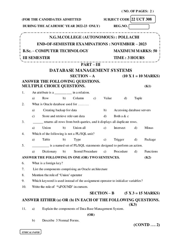 File #2219: "22UCT308 DATABASE MANAGEMENT SYSTEMS.pdf"