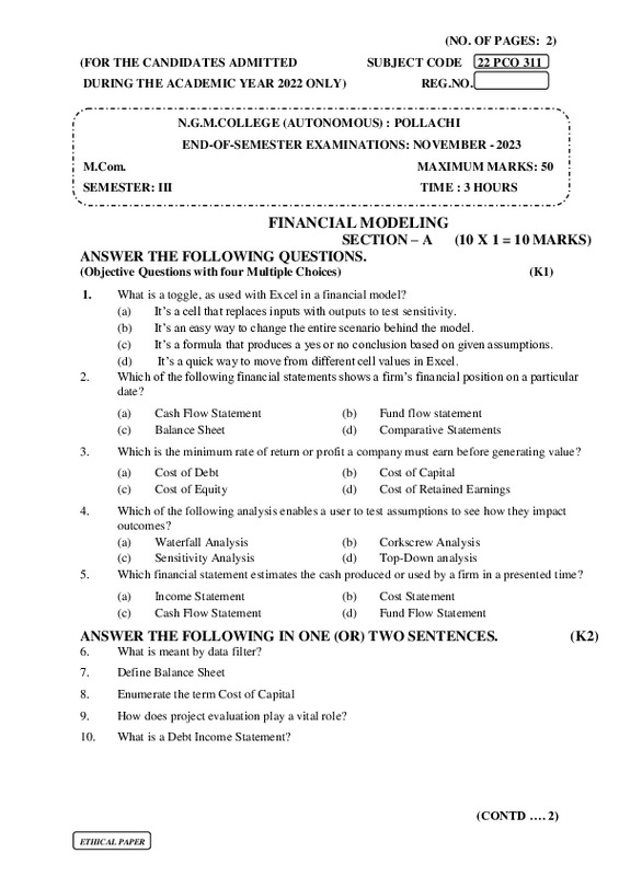 File #2258: "22PCO311 FINANCIAL MODELING.pdf"