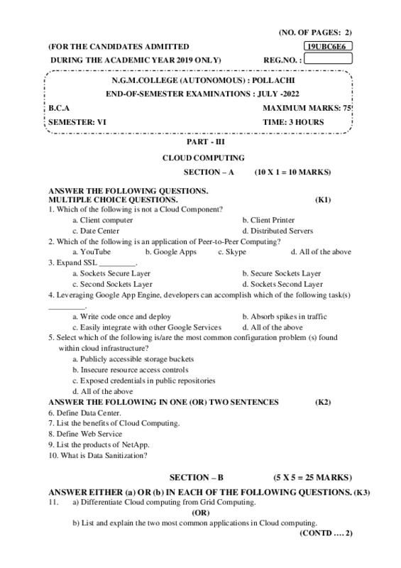 File #227: "19UBC6E6 - CLOUD COMPUTING - QP.pdf"