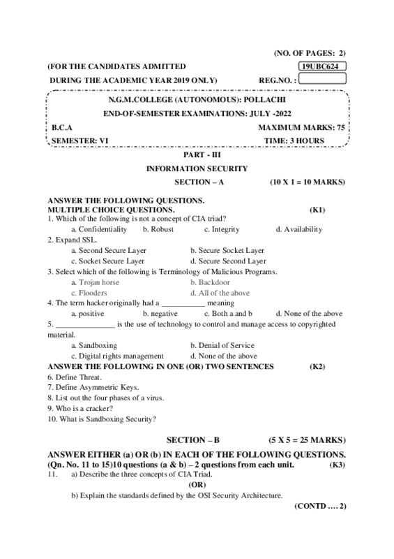 File #229: "19UBC624 - INFORMATION SECURITY - QP.pdf"