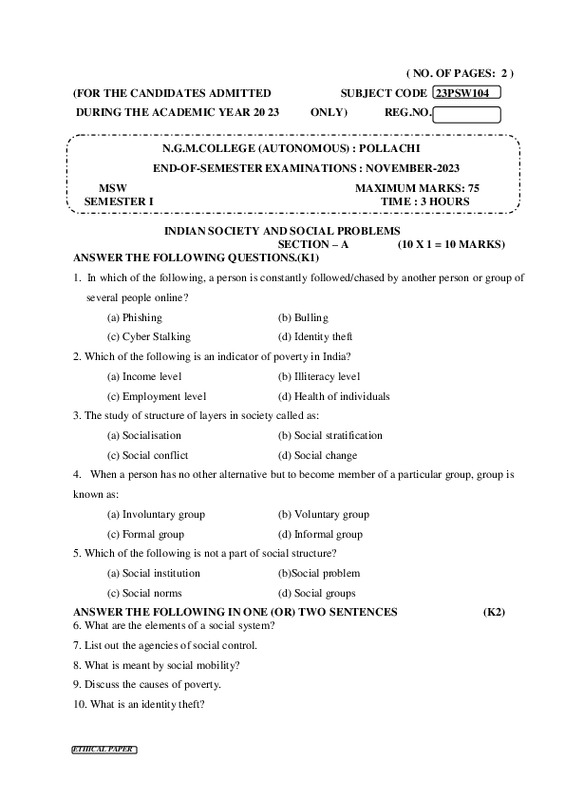 File #2290: "23PSW104 - INDIAN SOCIETY AND SOCIAL PROBLEMS.pdf"