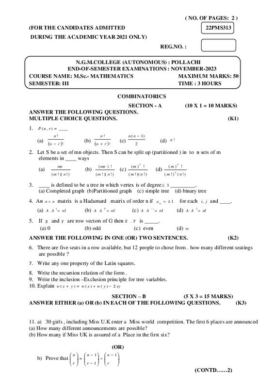 File #2302: "22PMS313-COMBINATORICS.pdf"