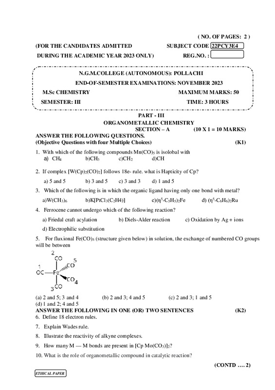 File #2309: "22PCY3E4 ORGANOMETALLIC CHEMISTRY.pdf"