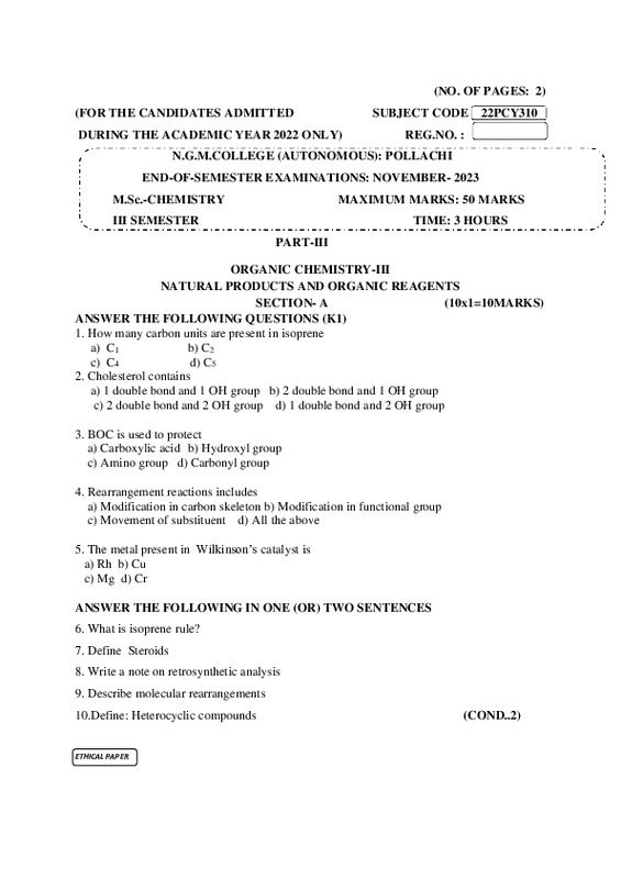 File #2310: "22PCY310 ORGANIC CHEMISTRY-III.pdf"