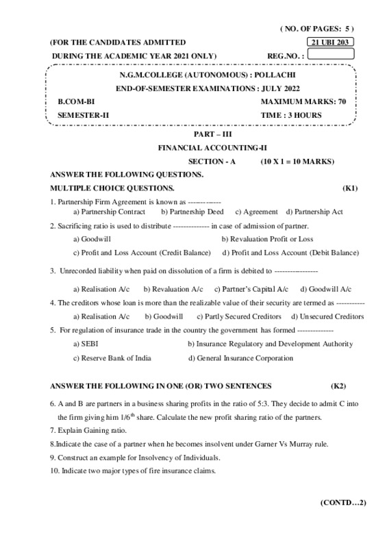File #232: "21UBI203-FINANCIAL ACCOUNTING-II-QP.pdf"