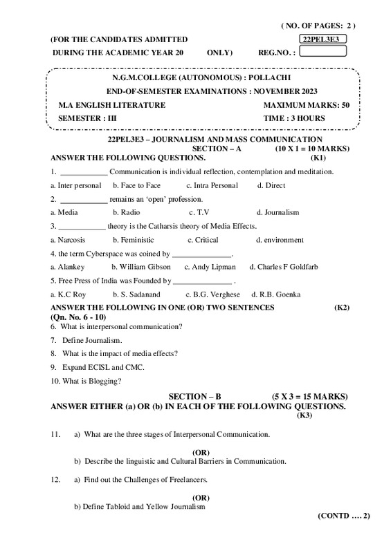 File #2339: "22PEL3E3 – JOURNALISM AND MASS COMMUNICATION.pdf"