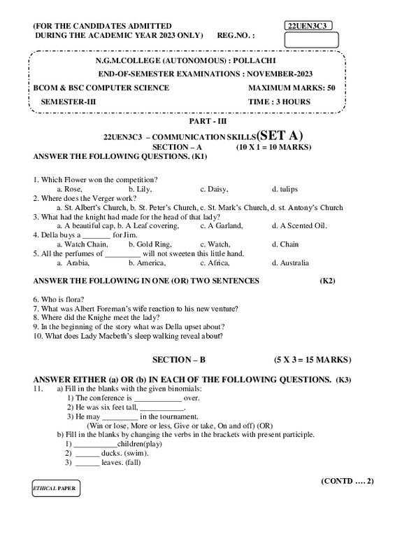 File #2361: "22UEN3C3–COMMUNICATION SKILLS(SET A).pdf"