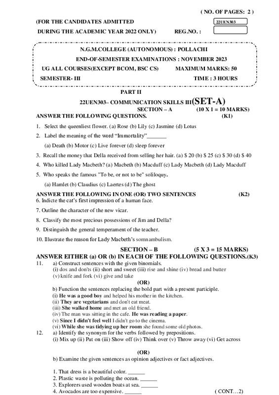 File #2363: "22UEN303-COMMUNICATION SKILLS III SET A.pdf"