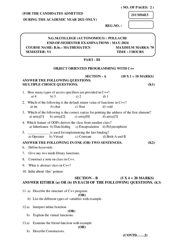 File #2367: "21UMS6E3-OBJECT ORIENTED PROGRAMMING WITH C++.pdf"