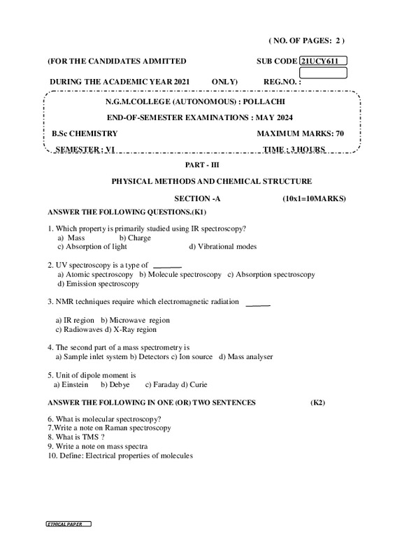 File #2387: "21UCY611-PHYSICAL METHODS AND CHEMICAL STRUCTURE.pdf"
