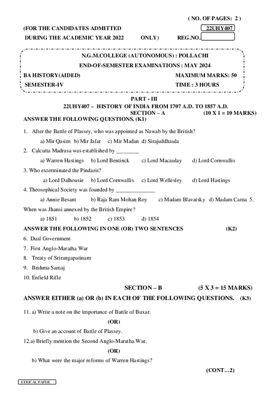 File #2429: "22UHY407–HISTORY OF INDIA FROM 1707 A.D. TO 1857 A.D..pdf"