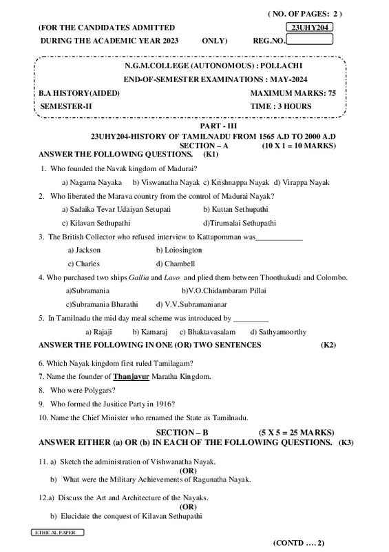 File #2433: "23UHY204-HISTORY OF TAMILNADU FROM 1556 A.D TO 2000 A.D.pdf"