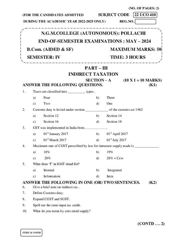 File #2458: "22UCO410 INDIRECT TAXATION.pdf"
