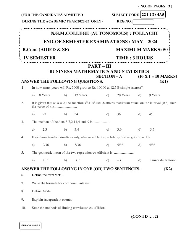 File #2460: "22UCO4A5 BUSINESS MATHEMATICS AND STATISTICS.pdf"