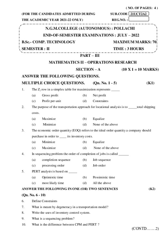 File #254: "21UCT2A2 - MATHEMATICS II – OPERATIONS RESEARCH.pdf"