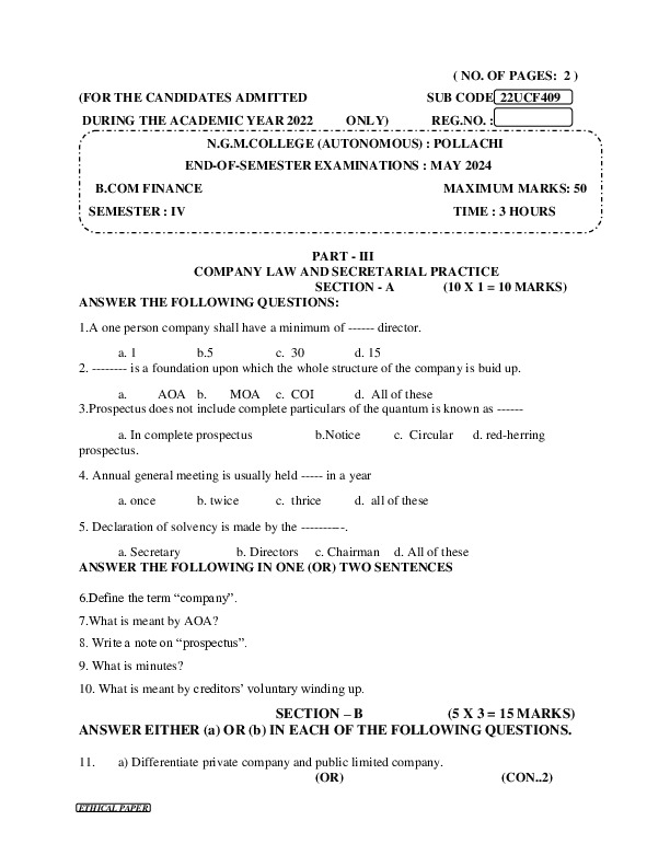 File #2546: "22UCF409 COMPANY LAW AND SECRETARIAL PRACTICE.pdf"