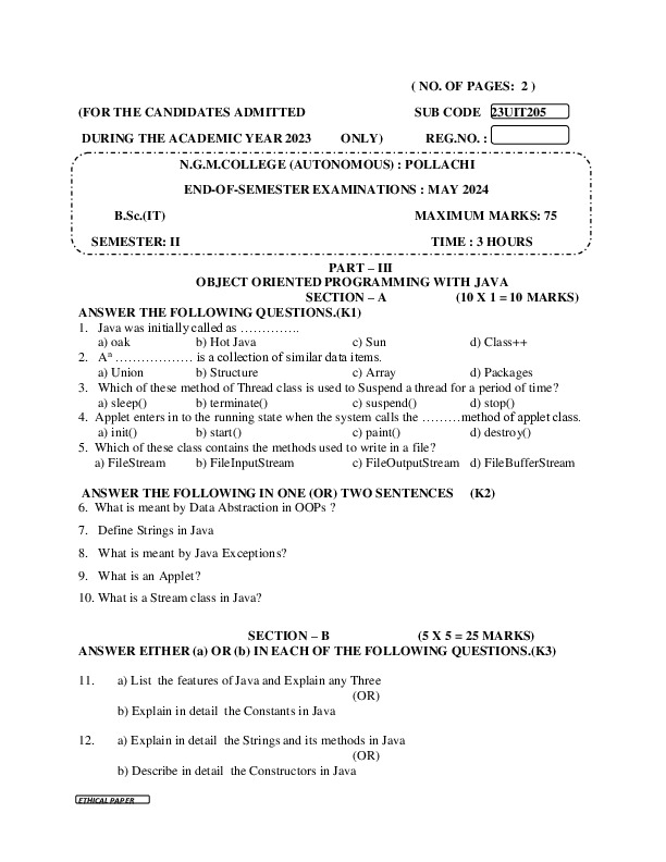 File #2569: "23UIT205 OBJECT ORIENTED PROGRAMMING WITH JAVA.pdf"