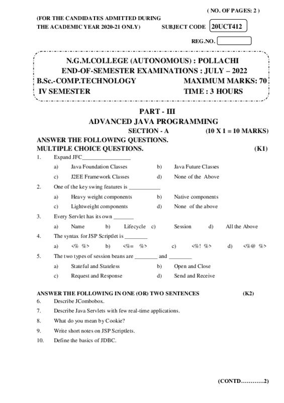 File #258: "20UCT412 - ADVANCED JAVA PROGRAMMING.pdf"