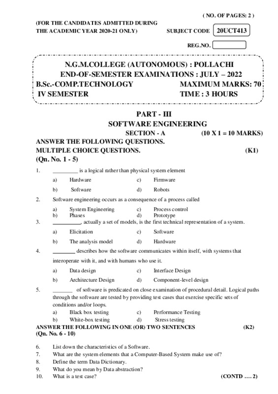 File #259: "20UCT413 - SOFTWARE ENGINEERING.pdf"