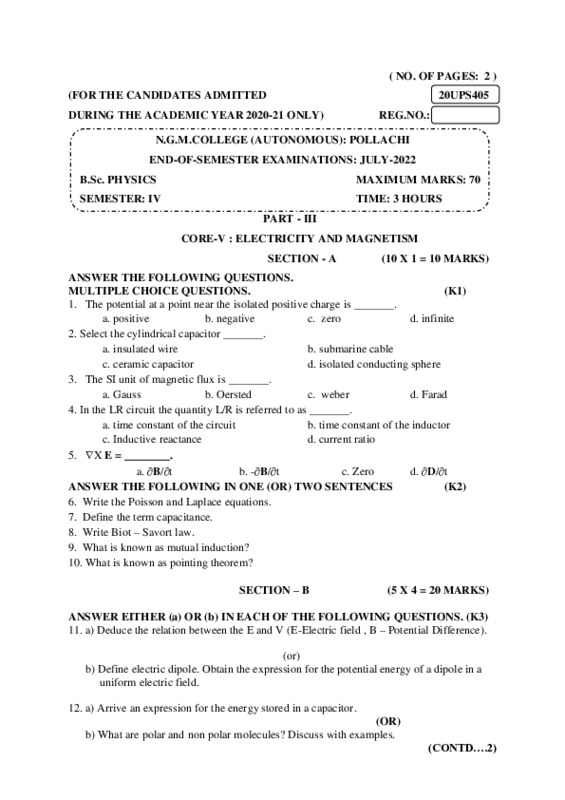 File #26: "20UPS405-ELECTRICITY AND MAGNETISM.pdf"