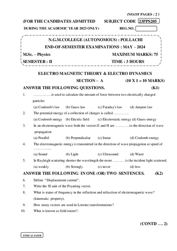 File #2624: "23PPS205 ELECTRO MAGNETIC THEORY & ELECTRO DYNAMICS.pdf"