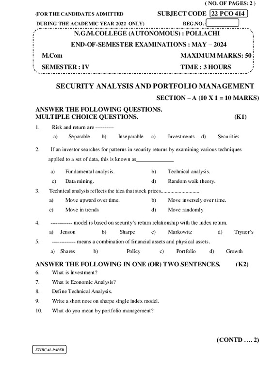 File #2628: "22PCO414 SECURITY ANALYSIS AND PORTFOLIO MANAGEMENT.pdf"