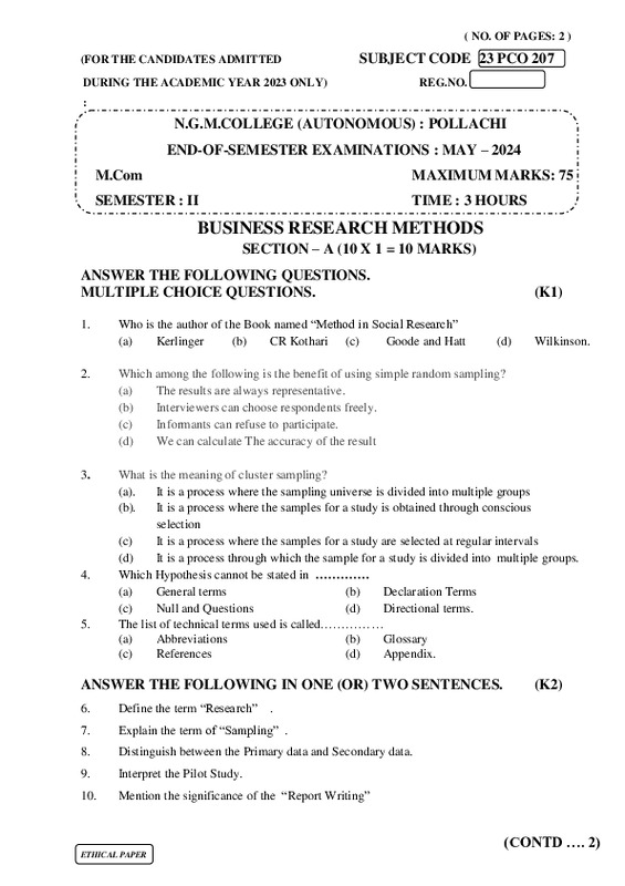 File #2632: "23PCO207 BUSINESS RESEARCH METHODS.pdf"
