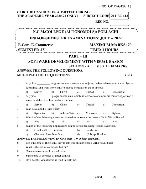 File #269: "20UEC412-SOFTWARE DEVELOPMENT WITH VISUAL BASICS.pdf"