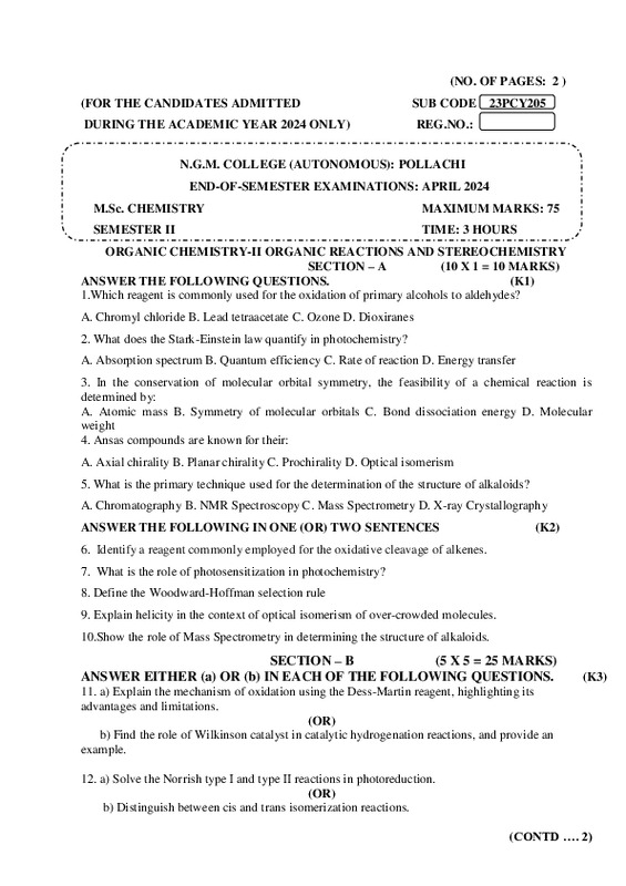 File #2691: "23PCY205 ORGANIC CHEMISTRY-II ORGANIC REACTIONS AND STEREOCHEMISTRY.pdf"