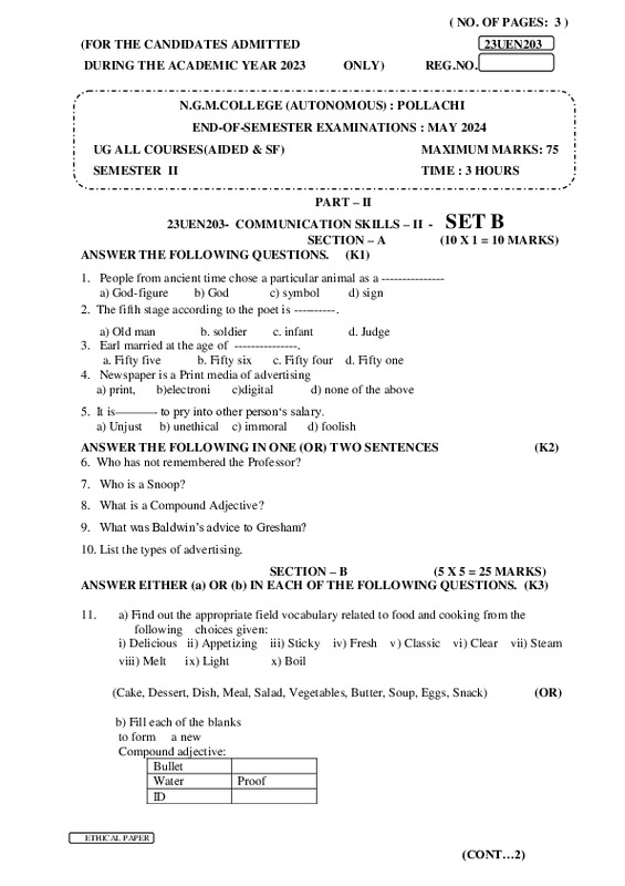 File #2712: "2.23UEN203- COMMUNICATION SKILLS – II SET B.pdf"