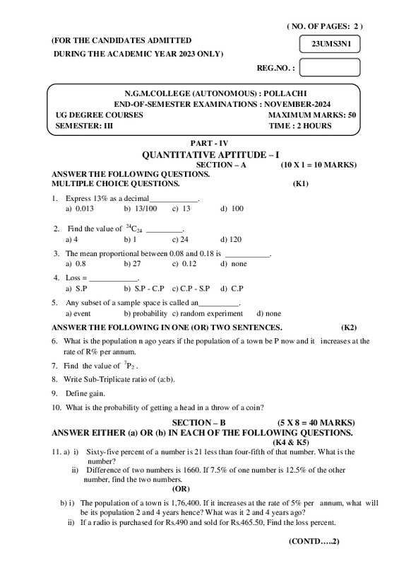 File #2815: "23UMS3N1– QUANTITATIVE APTITUDE – I.pdf"