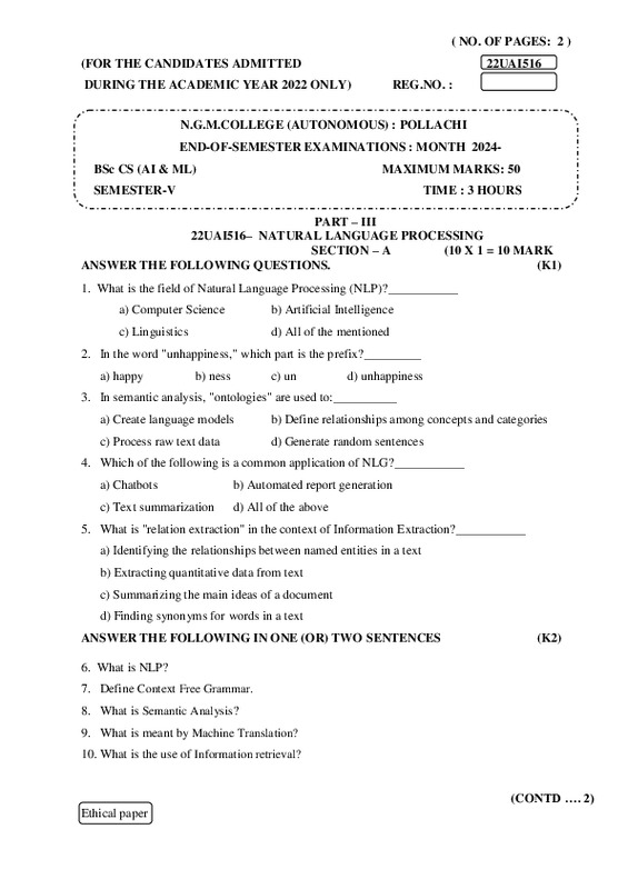 File #2827: "22UAI516– NATURAL LANGUAGE PROCESSING.pdf"