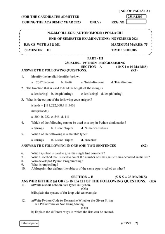 File #2830: "23UAI307– PYTHON PROGRAMMING.pdf"