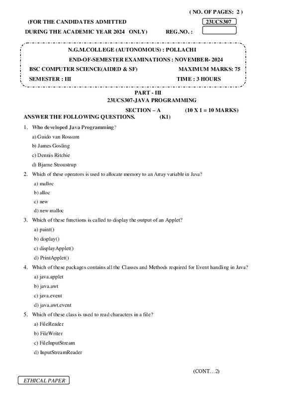 File #2851: "23UCS307-JAVA PROGRAMMING.pdf"