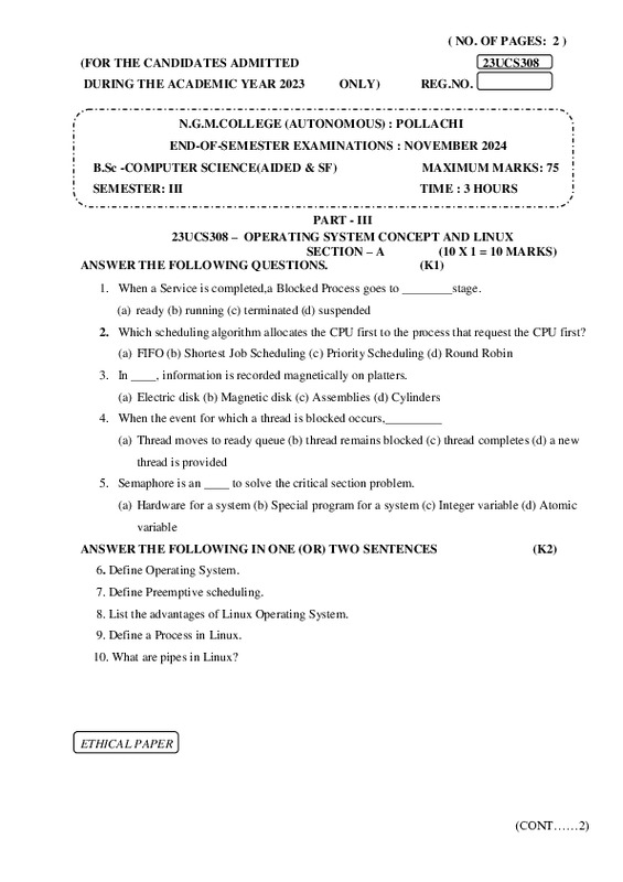 File #2852: "23UCS308 – OPERATING SYSTEM CONCEPT AND LINUX.pdf"