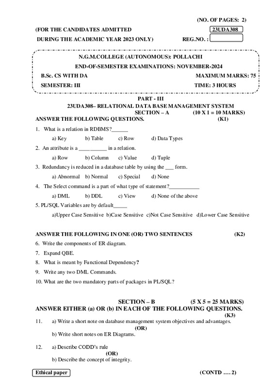 File #2862: "23UDA308– RELATIONAL DATA BASE MANAGEMENT SYSTEM.pdf"