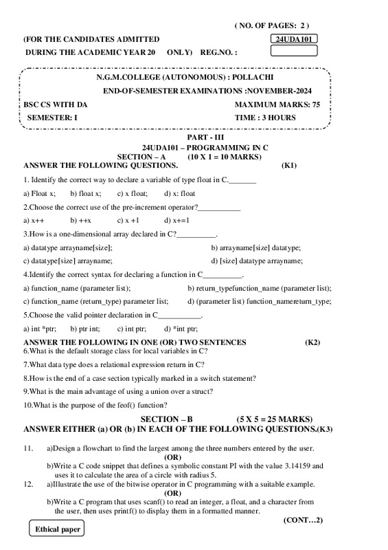 File #2864: "24UDA101 – PROGRAMMING IN C.pdf"