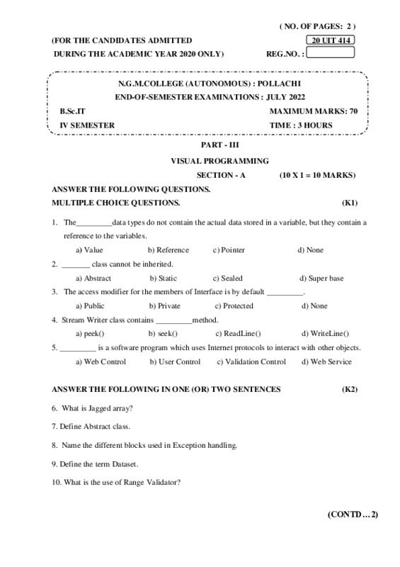 File #291: "20UIT414-VISUAL PROGRAMMING-ESE.pdf"