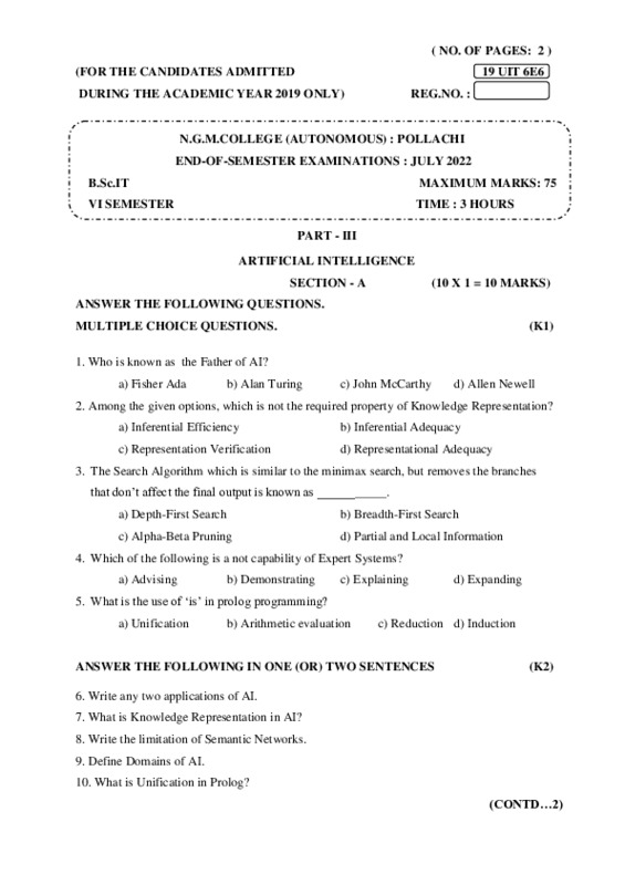 File #292: "19UIT6E6-ARTIFICIAL INTELLIGENCE-ESE.pdf"