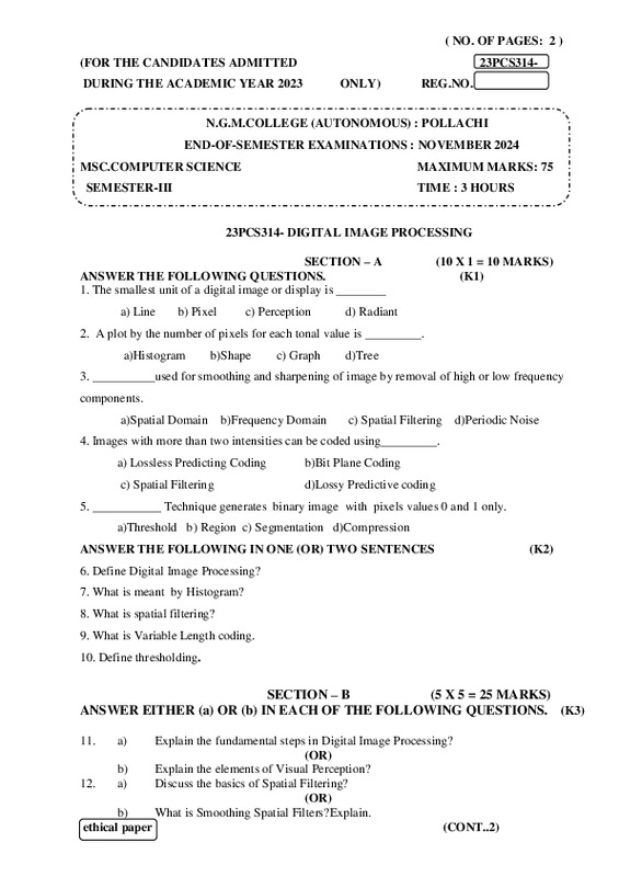 File #2922: "23PCS314- DIGITAL IMAGE PROCESSING.pdf"