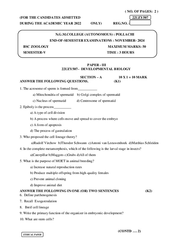 File #2927: "22UZY507– DEVELOPMENTAL BIOLOGY.pdf"