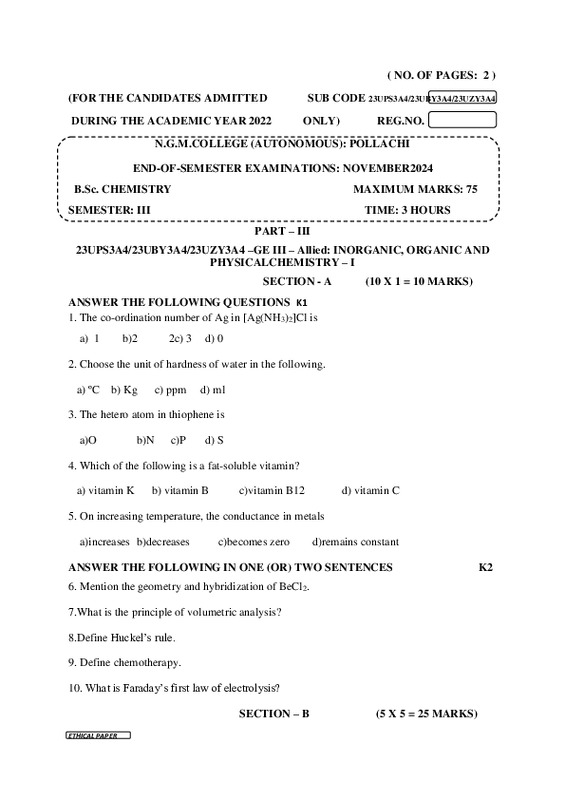 File #2951: "23UPS3A4 INORGANIC, ORGANIC AND PHYSICALCHEMISTRY – I.pdf"