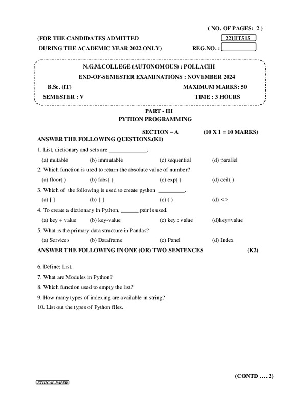 File #2989: "22UIT515-PYTHON PROGRAMMING.pdf"
