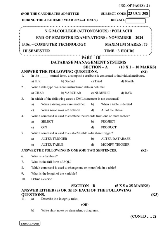 File #3097: "23UCT308 DATABASE MANAGEMENT SYSTEMS.pdf"